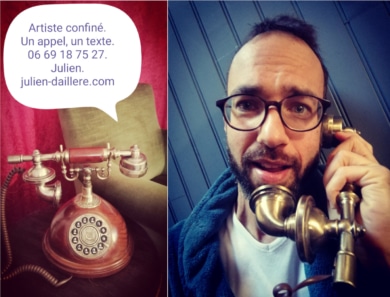 Jean Varela donne le programme du Printemps des Comédiens au téléphone