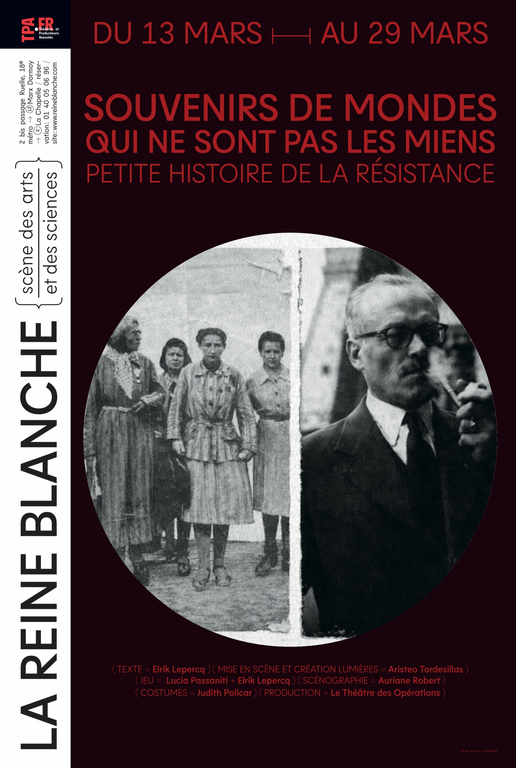 Aristeo Tordesillas met en scène Souvenirs de Mondes qui ne sont pas les miens d'Elrik Lepercq Des histoires de famille, des mémoires cachées. Histoire tendre et rocambolesque de deux personnes un peu perdues qui se réveillent dans un hôpital et se lient d’amitié autour d’une valise à souvenirs. Deux acteurs pour seize personnages, une histoire de la Résistance, de la France, de la guerre, d’une immigrée juive lituanienne inscrite au Parti Communiste, d’un grand-oncle gaulliste et chef de réseau. Tentative de compréhension d’un monde.