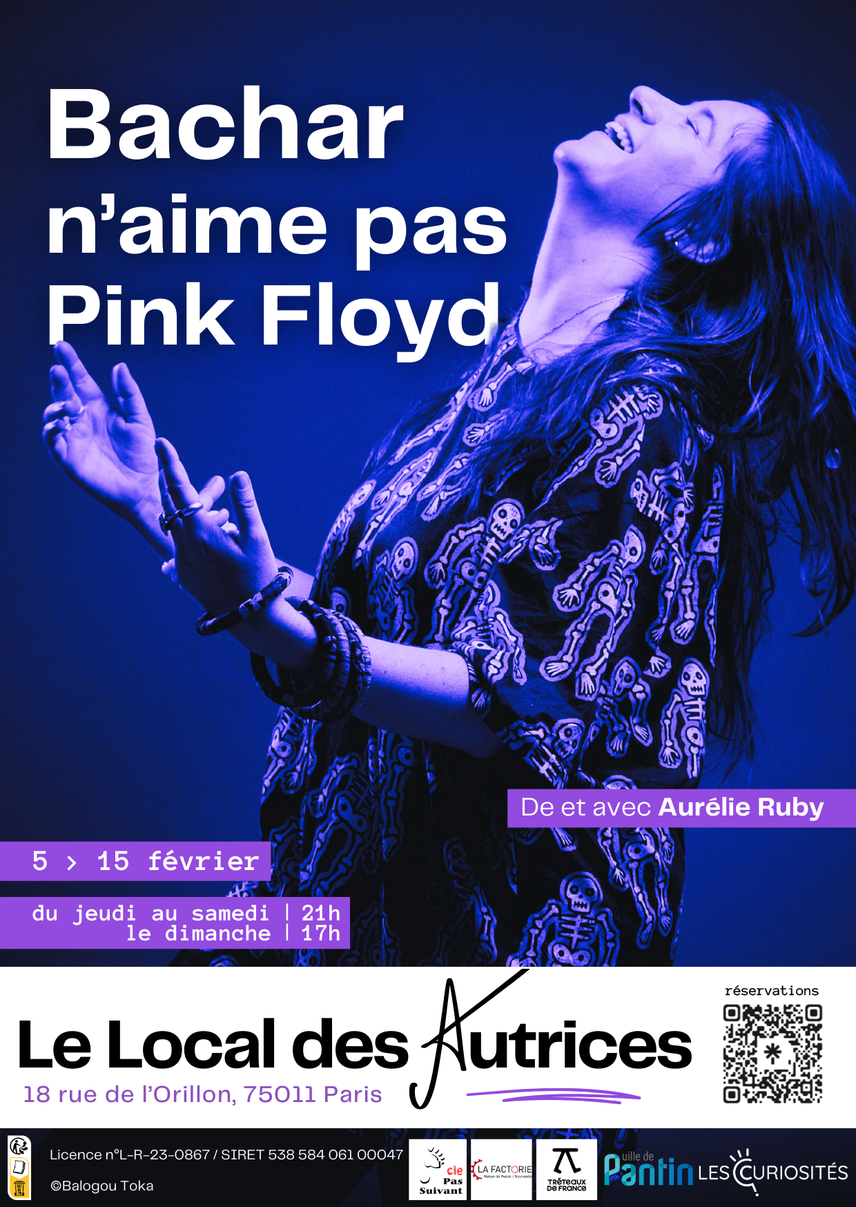 Ce spectacle est avant tout un chant de lutte, un hommage à la résistance syrienne et à tous ceux qui, de près ou de loin, en portent les stigmates. Une histoire d’amour franco-syrienne qui se heurte aux systèmes et aux réalités brutales de l’Histoire des sociétés. Seule en scène, elle performe son texte incandescent, brûlant, tendre et drôle aussi, à la frontière du personnel et du collectif, de l’amour et de la guerre, du souvenir, de l’exil et de l’oubli. Elle raconte la métamorphose d’une femme vers son propre être au monde. « L’art qui protège, la culture qui accueille l’étranger. Un texte philosophique interminable », d’après la poétesse syrienne Hala Mohammad. Aurélie Ruby nous rappelle que la poésie peut être une arme et que la littérature peut participer à la transformation du monde. Le texte déroule une langue vive, saccadée, qui rappelle la syntaxe des slogans scandés lors des manifestations. Ce rythme haletant exprime à la fois l’urgence de la révolte, la confusion et la douleur de l’absence. On est pris dans un tourbillon de mots qui se percutent, se répètent, à l’image du traumatisme qu’ils traduisent. Le Local des autrices est un nouveau lieu, en plein coeur de Belleville, qui rend visible et réunit les autrices.