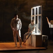 A l’image d’un pianiste qui joue d’une seule main, l’autre menottée à celle d’un officier sans visage, la figure de l’artiste comme instrument de résistance traverse tout le spectacle. Même entravé et en proie au doute, il lutte pour faire entendre sa vision et hurle la beauté du monde. L’image du feu, comme un fil rouge, rappelle tout autant le sacrifice et la violence que l’intense flamme qui couve. Et laisse entrevoir la possibilité d’un avenir heureux.