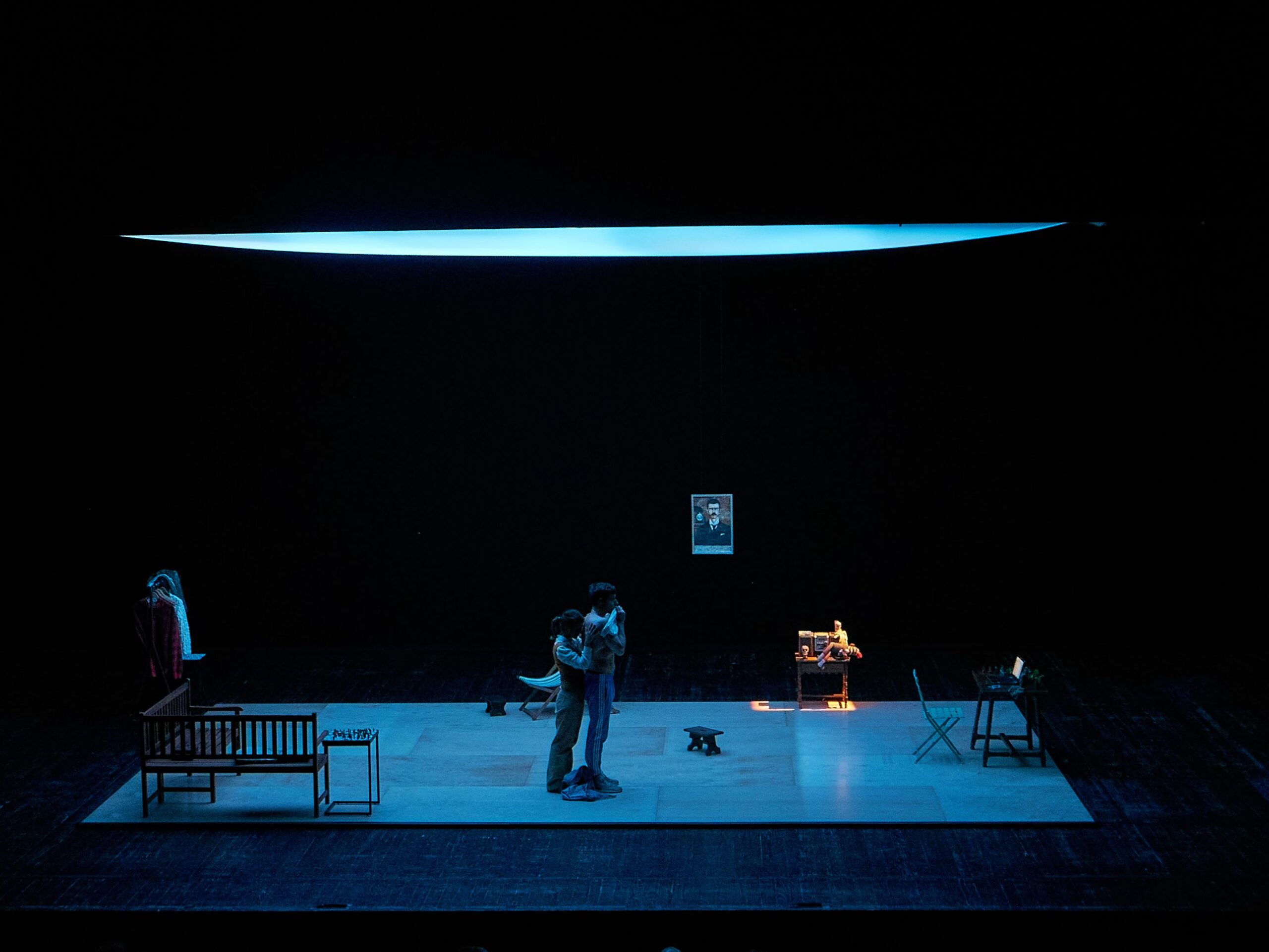 Souvent montée, la pièce place au cœur de son intrigue une relation mère/fils d’une ambiguïté captivante, qui suscite autant d’effroi que d’empathie. La figure maternelle est un personnage pivot. Elle règne seule sur ses enfants alors que le père s’est volatilisé. Obsédée par sa jeunesse révolue, hantée par ses rêves de gloire illusoire, elle est régulièrement montrée comme une écrasante monstresse. On se souvient de Luce Mouchel chez Jacques Nichet, Dominique Reymond chez Daniel Jeanneteau ou encore Isabelle Huppert chez Ivo van Hove. Ici, Úrsula, la mère (Susana Pampín), n’occupe pas le premier plan ; pas plus que son fils, Lorenzo, le frère (Esteban Bigliardi), épris d’ailleurs et de soif d’évasion. Ce double fictif de l’auteur, habituellement campé avec une fougue brûlante, passe volontairement pour un peu falot, d’une morosité maladive qui le rend amorphe sur sa chilienne, le nez plongé dans les pages de son livre.