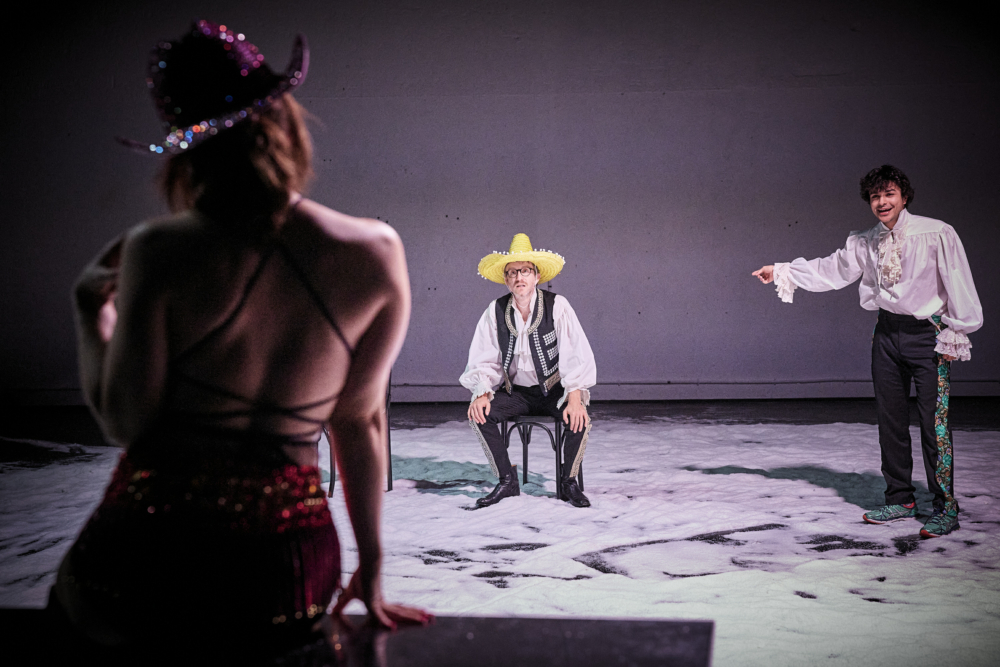 De mémoire de spectateur, cela faisait longtemps, très longtemps, trop longtemps que l’on n’avait pas vu la petite salle du Théâtre de La Commune répondre à une telle configuration, aménagée dans un dispositif bi-frontal – avec un gradin sobrement scindé en deux – qui lui offre une nouvelle jeunesse, une aura particulière, et ferait presque oublier son état de vétusté pour le moins avancé. Aux yeux de Frédéric Bélier Garcia, ce changement de décor fait peut-être office de signal et symbolise, sans doute, le nouveau souffle qu’il entend donner au CDN d’Aubervilliers, dont il a pris la tête en janvier 2024. Pour sa première création en tant que directeur, le metteur en scène a moins choisi de « s’apparier à une ville d’aujourd’hui, flamboyante et fragile dans ses diversités, ses contradictions, ses métabolismes, ses revers et ses espérances », c’est-à-dire d’aller vers elle, ses habitantes et ses habitants, comme il le prétend dans sa note d’intention, que de les embarquer dans son monde théâtral, où les auteurs singuliers, comme Fredrik Brattberg et Ivan Viripaev, occupent ces dernières années une place de choix. Et c’est à l’auteur d’origine russe, qui éveille décidément le désir d’un nombre croissant de metteurs en scène au fil des saisons, que Frédéric Bélier Garcia a décidé de s’en remettre, et plus précisément, et curieusement, à ses Enivrés, qui, en regard des Guêpes de l’été nous piquent encore en novembre, qu’il avait montée en 2019 au Théâtre de la Tempête, La Ligne solaire, Illusions ou Insoutenables longues étreintes, n’est, disons-le d’emblée, pas l’une de ses meilleures pièces.