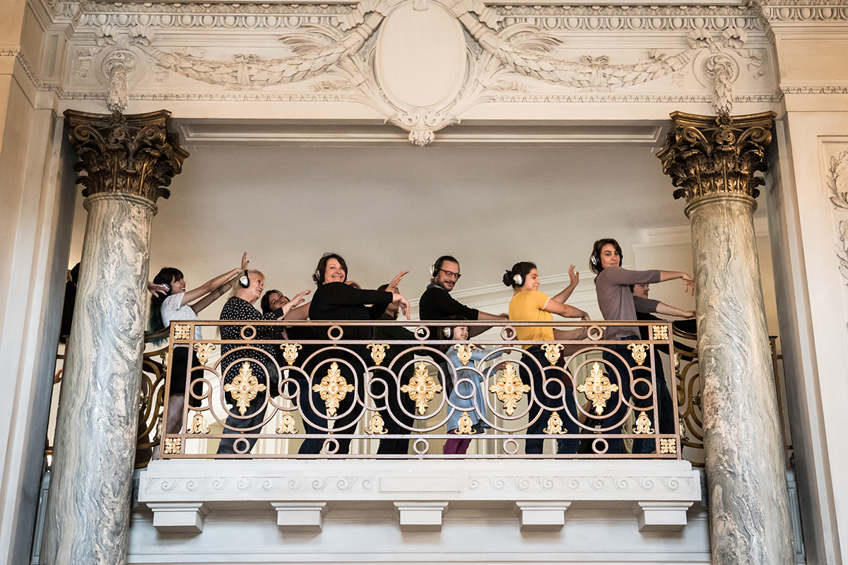 Casque sur les oreilles, les participants deviennent les interprètes d’une partition vivante, guidés par une bande-son mêlant rythmes contemporains et musiques électro de défilés de mode. Pas à pas, le public traverse l’histoire foisonnante du lieu : l’élégance des grands défilés de haute couture, les élans du salon de l’aviation, l’effervescence populaire du salon des arts ménagers, la grâce millimétrée du patinage artistique, ou encore la puissance symbolique de la cavalerie sous la verrière.