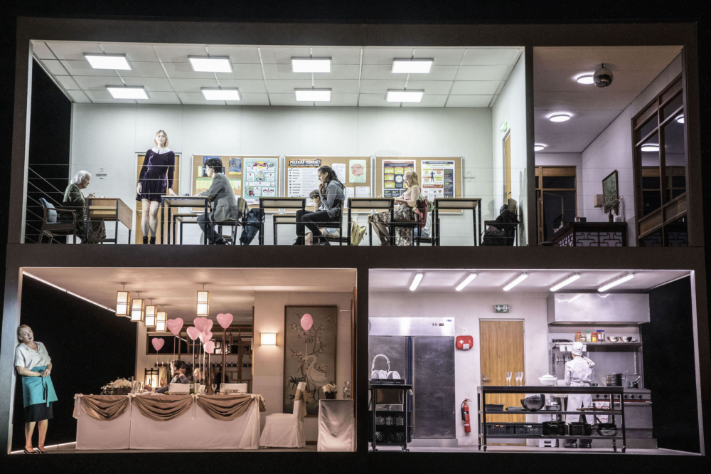 Pour la célèbre mezzo-soprano américaine Joyce DiDonato, s’emparer de cette pièce s’est imposé comme une évidence. « C’était le sujet, et le sentiment de l’importance de raconter cette histoire, de la raconter en Amérique en 2026. » L’action de cette pièce, dernière oeuvre de la grande compositrice finlandaise décédée deux ans plus tard, oscille entre une cérémonie de mariage bourgeois, où la famille du tueur tourne autour de l’innommable, et les instants qui ont précédé et suivi le drame dix ans plus tôt.