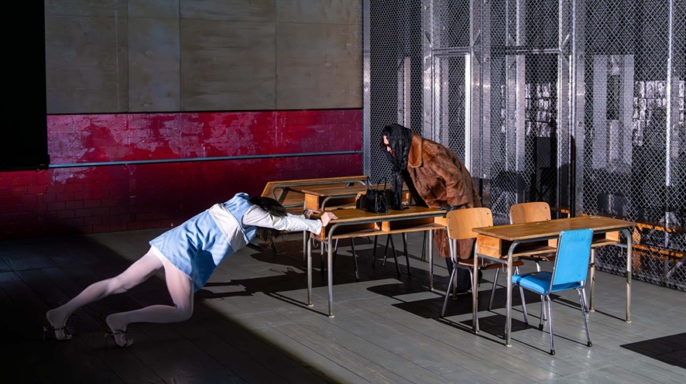 Ce « présent total », c’est précisément ce que le metteur en scène parvient à cristalliser ici en une œuvre tout aussi totale. Dans une scénographie déroutante signée Małgorzata Szczęśniak, d’angoissants espaces transitionnels reflètent le no man’s land mental dans lequel serpente le trauma, heurtant les figures de Wediaa, Mégara, Jovette, les filles d’Europe, ou sautant insidieusement une génération pour dévorer son petit-fils Zacharie d’une violence ancestrale. Tandis qu’une vidéo hypnotique traque les secrets dans l’intimité des visages – victimes, témoins, complices, instruments ? –, dans la salle de classe rouge sang, qui vire du théâtre horrifique au tribunal des mémoires, se joue, entre allégorie et hyperréalisme, la question de notre responsabilité de descendants.