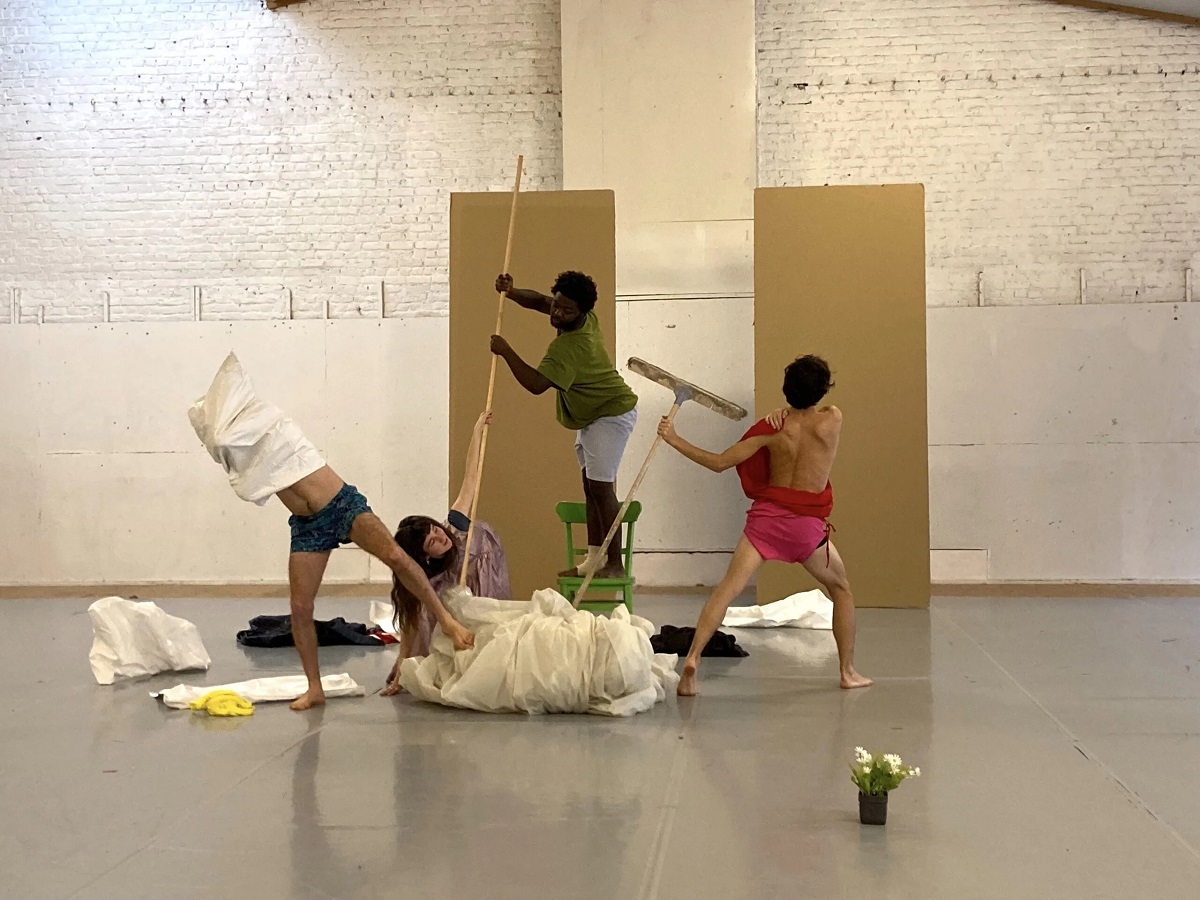 Sur scène, s’esquisse alors un espace comme « sur le fil » : entre légèreté et intensité, leurs gestes et trajectoires oscillent entre la tentation d’un abîme – celui de nos actualités violentes, des passions trop fortes et de la consommation de nos vies – et la nécessité d’une suspension, pensée à la fois comme désir, recommencement et déviation.