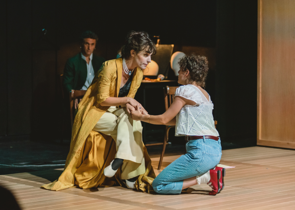 Le travail n’est pas mince. Des seize personnages inventés par Beaumarchais, Lucile Lacaze en conserve dix (dont quatre annexes) interprétés par six acteurs et actrices. Des différentes pièces du château et des jardins où se déroulent les intrigues sur une journée, elle fait un parquet au sol encadré astucieusement par des portes coulissantes en bois et une vue, la plus profonde possible, sur les coulisses où sont stockés des rangs de costumes. Les entrées de la salle de théâtre, celles dédiées au public et celles des artistes, sont autant de trappes pour déployer ce récit effréné mené très habilement.