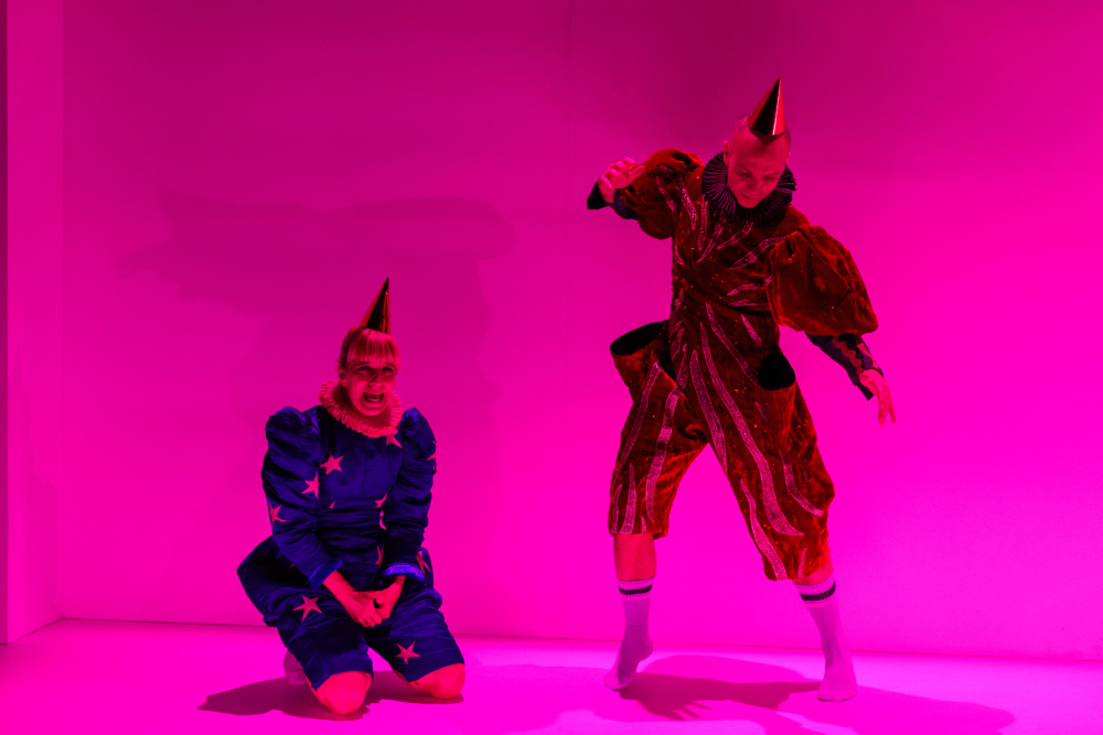 Car, dès les premières tirades où Florence Janas paraît rejouer, mimiques à l’appui, un dialogue avec sa mère, l’on semble comprendre, grâce à un simple « Bonjour mon chéri » et à une référence à Uzès, la ville natale de Guillaume Vincent, qu’elle s’est plutôt glissée dans la peau du metteur en scène, de retour dans son pays. Accompagnée par Musette, sa chatte « vieille comme [elle] », la matriarche n’a plus franchement toute sa tête, confondant son animal avec celui de sa voisine, mélangeant les temporalités, ne sachant plus trop si son fils a des enfants, ou non. Épaulées par des aides à domicile qui viennent lui donner ses cachets, elle n’en garde pas moins un sens de l’humour décapant, une certaine fierté qui la pousse à vouloir faire belle figura, et des souvenirs précis de son métier de sage-femme, de ce premier accouchement de jumeaux, qui, au moment de leur naissance, « se déchiraient à l’intérieur » ou de cette jeune femme de 13 ans qui débarque à l’hôpital en plein déni de grossesse. À la manière d’une personne à la mémoire défaillante, qui passe bien souvent du coq à l’âne sans coup férir, Florence Janas, bientôt rejointe par Guillaume Vincent, vogue d’un sujet à l’autre, d’une période temporelle à l’autre, d’une vie à l’autre par une série de glissements successifs, qui lui permet de tout mêler et de tout combiner : le réel et la fiction, les personnages et les acteurs – en cours de création – qui les incarnent, l’existence de Guillaume Vincent et la sienne, les plans cul foireux – conséquence d’une vie sentimentale compliquée – de l’un et l’AVC de la mère de l’autre… Comme si, en définitive, ces deux « clowns », malgré leurs enveloppes corporelles distinctes, ne formaient plus qu’une seule et même entité.