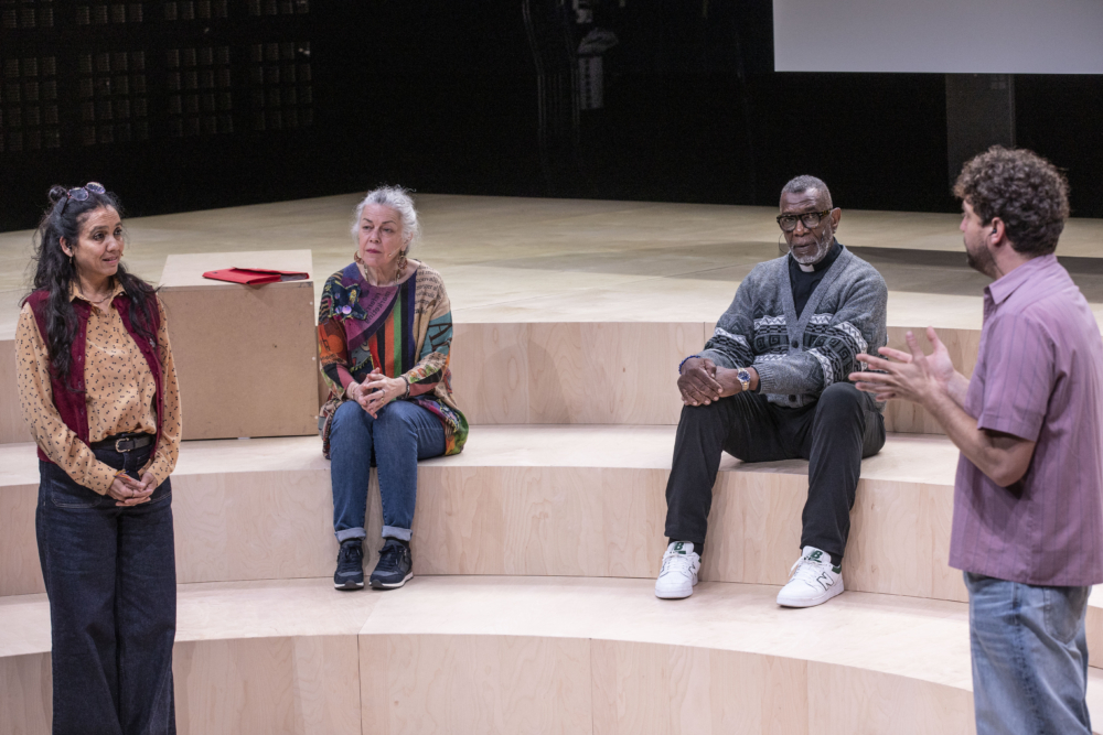 Entre les suicides queers dans l’art, les animaux bizarres et la destinée entourée de mystère de l’artiste néerlandais Bas Jan Ader – dont un extrait de la performance I’m Too Sad to Tell You est diffusée en préambule –, cette histoire occupe une place de choix dans la boîte à archives de Marcus Lindeen, qui fait du comédien Nans Laborde-Jourdàa son double théâtral. L’artiste suédois a d’abord pensé réaliser un film à partir du destin de Piano Man, si possible en le rencontrant. Las, ses lettres restées sans réponse l’obligent à changer son fusil d’épaule. En janvier 2025, Lindeen décide alors de mener sa contre-enquête et interroge une collection de témoins, dont Anthony Bambury, Niranjani Iyer et Bridget O’Loughlin se font les porte-voix respectifs en tant que (soi-disant) aumônier, neurophysicienne et membre de l’équipe médicale. Ensemble, et chacun à leur endroit, ils racontent leur version de cette histoire, celle de l’intérieur, loin du tohu-bohu médiatique. De façon quasi clinique, ils déroulent la longue liste d’hypothèses qui ont, dans les premiers jours et les premières semaines, concerné le jeune homme, qu’ils ont successivement envisagé comme un réfugié – sans étiquettes à ses vêtements ni papiers d’identité –, le pianiste de l’orchestre d’un bateau de croisière que l’on aurait poussé à la mer, un patient atteint d’autisme, d’amnésie ou du syndrome de Münchhausen – qui pousse un individu à simuler ou provoquer volontairement des symptômes physiques ou psychiques pour être pris en charge – ou encore un individu en pleine fugue dissociative ; puis, avec l’aide et la complicité de leur chef d’orchestre et accoucheur de parole, Nans Laborde-Jourdàa, ils tentent d’ausculter l’emballement médiatique et ses conséquences, notamment auprès des citoyennes et citoyens toujours friands d’élucubrations en tous genres – comme le prouvent, à leur échelle, des cas comme ceux du docteur Godard ou, plus récemment, de Xavier Dupont de Ligonnès.