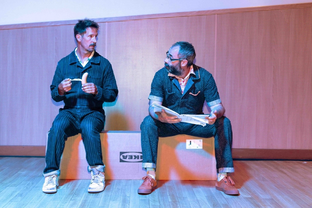 Entre Mathieu Despoisse et Étienne Manceau, le courant passe. Tous deux pratiquants d’un cirque minimaliste aux accents absurdes, ils se retrouvent pour parler du couple dans Pling-Klang. Avec bonheur, le duo déconstruit cette notion tout en montant un meuble en kit. Ou plutôt en s’y essayant…