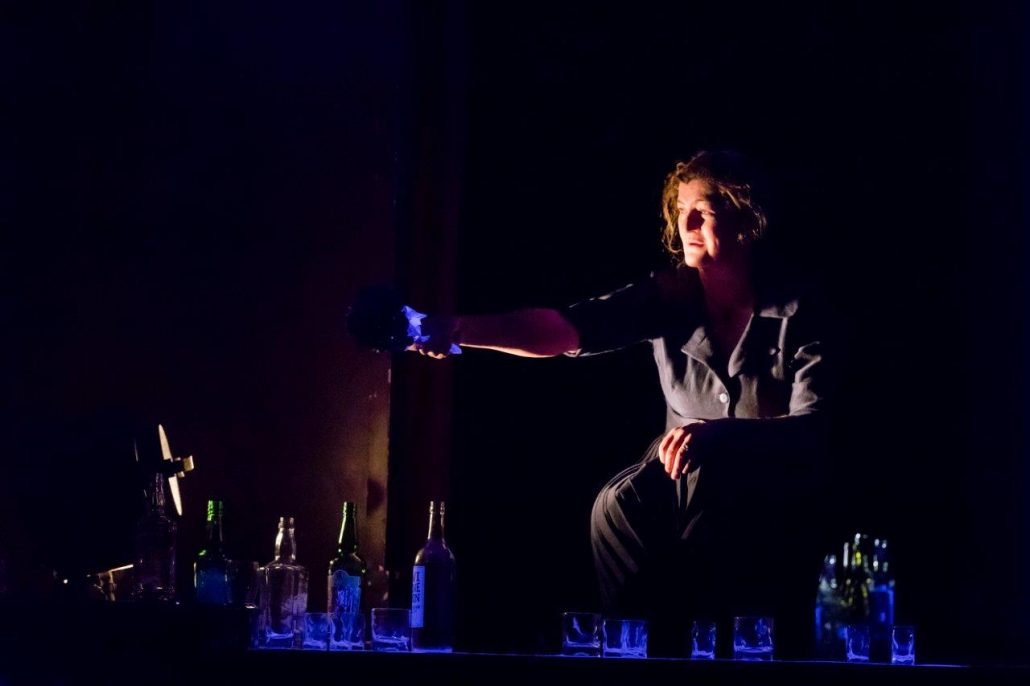 Les trois voix s’entremêlent dans une construction de jeu astucieuse. Les monologues des personnages (le docteur Rice, Moly et son mari Franck) s’emboitent dans un rythme effréné. Les phrases se chevauchent comme en surimpression. Julie Brochen est très convaincante, elle incarne à la fois la douceur et la force du caractère de cette femme au parcours extraordinaire. Molly a peur de voir disparaître l’ancien monde qui était le sien, pour se retrouver dans celui des voyants. Une sorte de saut dans l’inconnu. Ce qui n’est pas le cas de Julie Brochen qui retrouve avec bonheur le plaisir de jouer de nouveau sur une scène de théâtre.