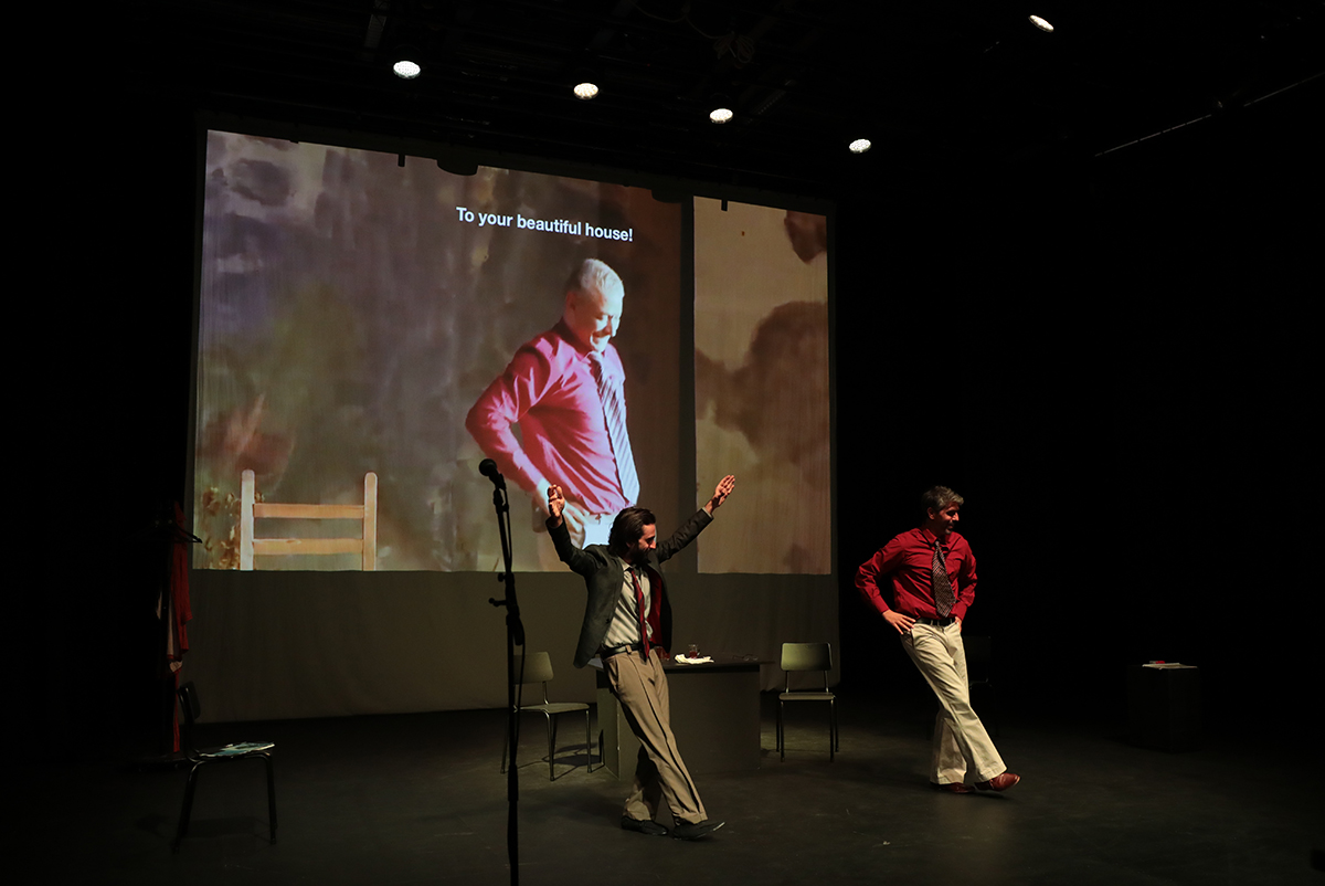 Au déclenchement de la guerre, se jouait à Gaza, au Théâtre pour tous, Les Émigrants de S. Mrożek, mis en scène par Noam Nassar. La pièce s’est arrêtée. Le théâtre a été détruit. La metteuse en scène israélienne Einat Weizman a choisi de poursuivre le spectacle, à l’identique, tout le temps que durera la guerre. Comme un acte de résistance contre l’effacement de la culture palestinienne, une tentative désespérée de recréer, par le théâtre, ce qui a été détruit.