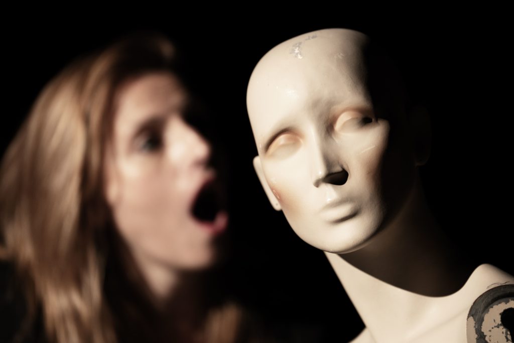 Sur scène, salariés et dirigeants dialoguent avec un chœur de haut- parleurs installés dans des mannequins de prêt-à-porter et rejouent les échos d’une chute annoncée, mêlant leurs voix à l’électronique et au trombone, nouvel aulos qui renvoie aux premiers temps de la tragédie antique.